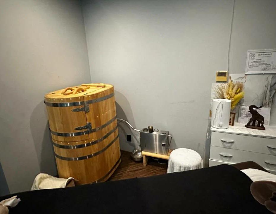 Удобная инфраструктура: раздевалка с индивидуальными шкафчиками, душ и зона ресепшена.