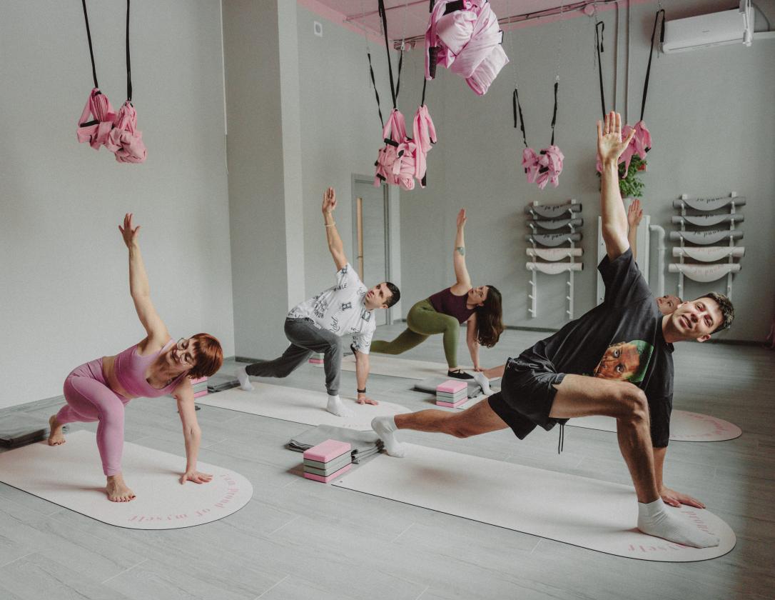 Студия йоги предлагает более 30 направлений для комплексной работы с телом: хатха-йога (включая практики с поющими чашами, медитациями и балансами), аэройога и аэростретчинг, пилатес, стретчинг и МФР. В расписании также представлены специализированные классы: женские практики, йога для беременных, здоровая спина и гвоздестояние. Все занятия проводятся в формате групп для начинающих и продолжающих.