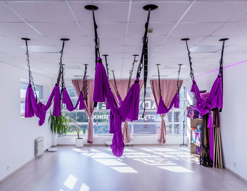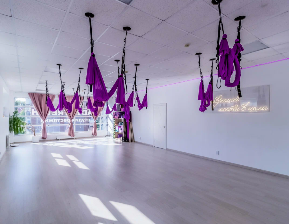Направления : Пилон, Полотна, Кольцо, Гамаки, Йога, TRX, Растяжка,Здоровая спина, Силовые, Массаж