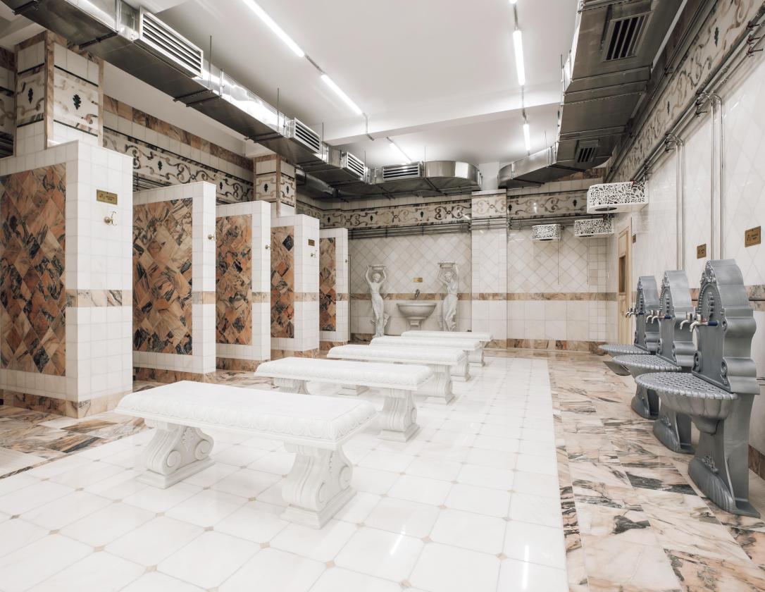 Банный комплекс продолжает традиции знаменитых Сандуновских бань, основанных в 1808 году в Москве. Гостям доступны просторные помещения площадью 1000 кв. м., включающие мужской и женский разряды, а также высший мужской разряд. Для полного расслабления и оздоровления предлагается классический массаж для мужчин и женщин.
