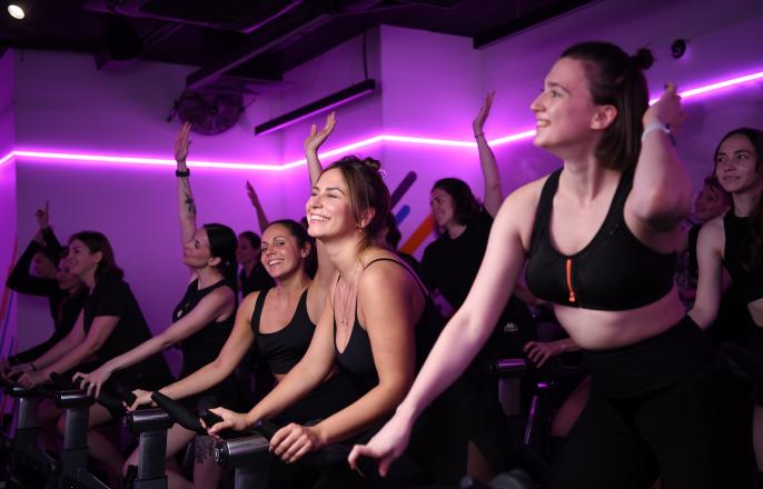 Энергичные инструкторы, специально подобранная музыка, приглушенный свет помогают создать оазис, объединяющий философию фитнеса, медитации и ощущение зажигательной вечеринки.