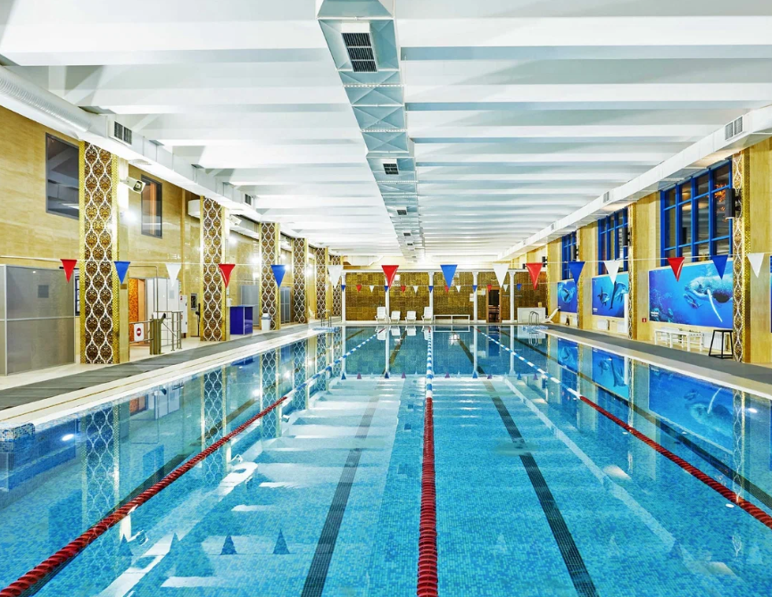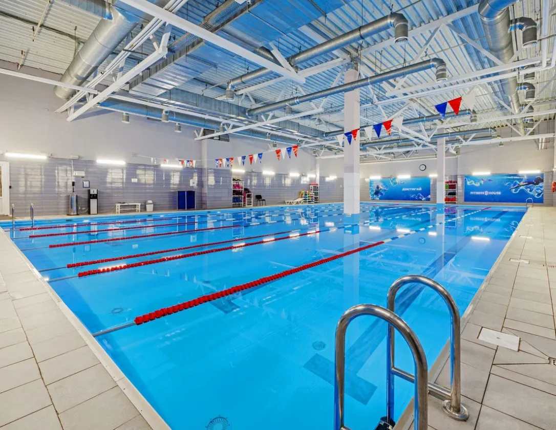 Фитнес-клуб с большим спортивным бассейном 25 м на 5 дорожек и отдельным детским бассейном глубиной 60–80 см. Для восстановления работает СПА-зона: хамам, финская сауна и инфракрасная кабина. В тренажерном зале представлено оборудование для силовых и кардиотренировок, выделены зона свободных весов и площадка для единоборств. В аэробном зале проходят занятия по растяжке, пластике, а также программы для коррекции осанки и фигуры. Для детей работают секции плавания, дзюдо, рукопашного боя и детский фитнес, что делает клуб подходящим вариантом для всей семьи.