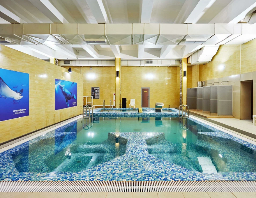 Фитнес-клуб с собственным бассейном для продуктивных тренировок и комфортного отдыха. В распоряжении гостей большой 25-метровый бассейн с шестью дорожками и два отдельных детских бассейна глубиной 0,8 и 1,2 метра. Для восстановления после нагрузок работает СПА-зона: финская сауна, турецкий хаммам и инфракрасная кабина. Тренажерный зал оснащен оборудованием для силовых и кардиотренировок, есть зона свободных весов и велотренажеры. Проводить время активно помогают два стола для настольного тенниса. В аэробных залах опытные тренеры проводят занятия по растяжке и коррекции фигуры. Для детей разного возраста открыты секции по плаванию.