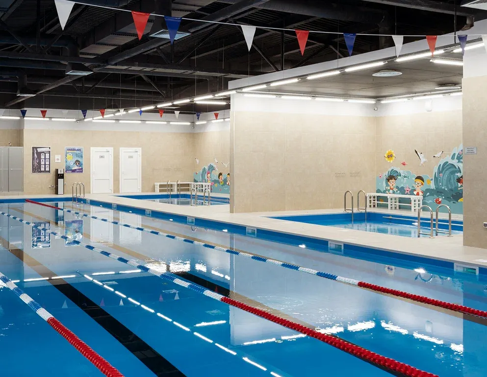 Фитнес-клуб с бассейном и спа-зоной для плавания и восстановления. В распоряжении гостей спортивный бассейн с двумя дорожками и отдельный детский бассейн глубиной 60 см. Для релаксации работает спа-комплекс: хамам, две финские сауны, инфракрасная кабина и джакузи. Также доступны массажный кабинет и фитнес-бар. Тренажерный зал оснащен для силовых и кардиотренировок, есть зона свободных весов, секции для единоборств и велотренировок, два стола для тенниса. В аэробном зале проходят занятия по растяжке и коррекции осанки. Для детей организованы секции плавания для разных возрастов.