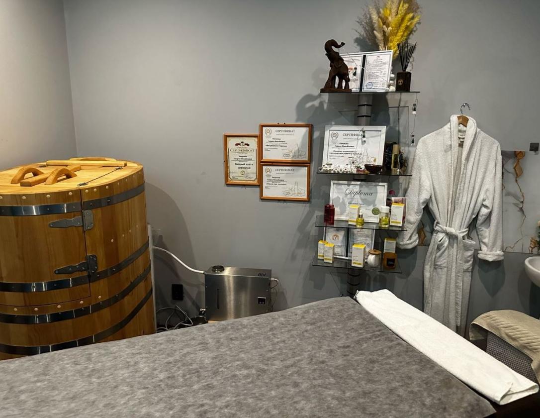 Удобная инфраструктура: раздевалка с индивидуальными шкафчиками, душ и зона ресепшена.