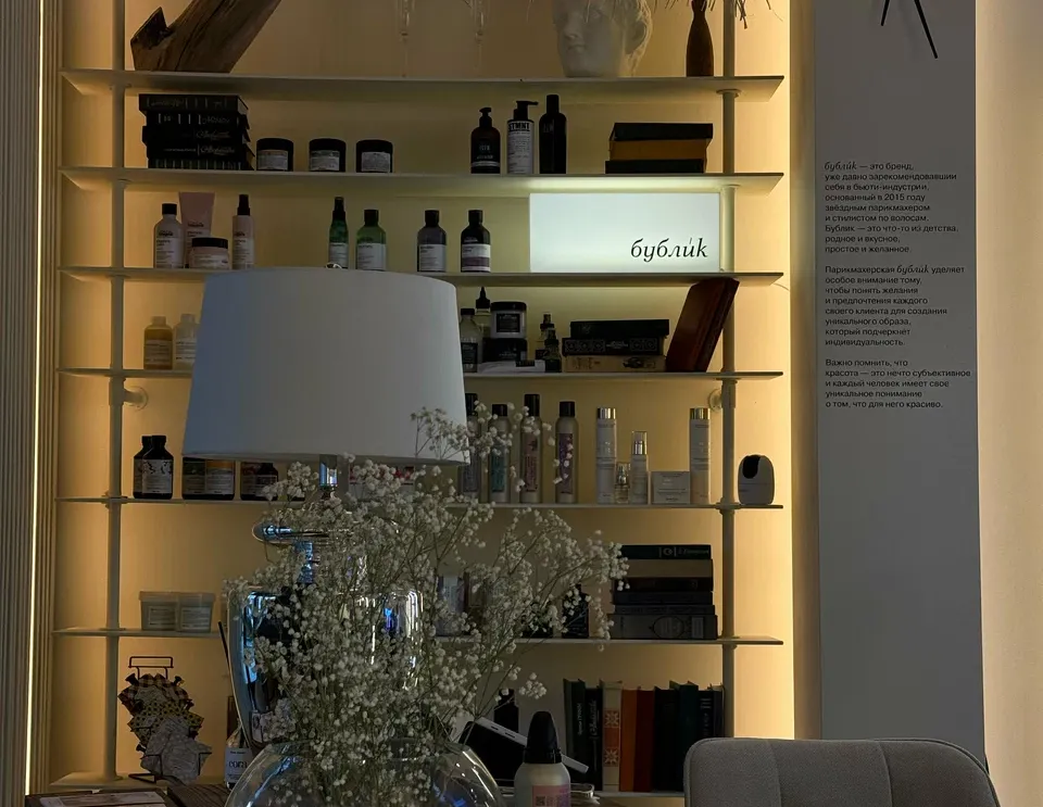 Креативное пространство «Бублик» — это место, где рождаются идеальные образы. Виртуозы студии мастерски создают стильные стрижки, сложное окрашивание и безупречные укладки. Для здоровья и сияния ваших волос мастера используют профессиональные уходы ведущих брендов: Lanza, Tokio Inkarami и Advanta. Каждому гостю здесь гарантирован индивидуальный подход, атмосфера вдохновения и результат, который превосходит ожидания. Доверьтесь профессионалам, чтобы ваши волосы стали настоящим произведением искусства.