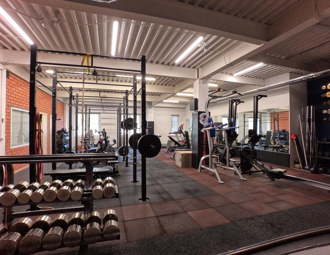 Zaruba Fitness располагает просторным тренажёрным залом с современным качественным оборудованием: широкий ряд гантелей, зона кардио и функционального тренинга.