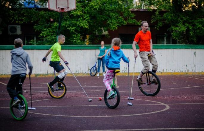 Школа катания на уницикле, одноколесном велосипеде